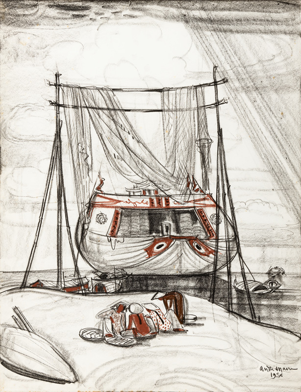 Craie conté sur papier, signée et datée 1956 en bas à droite.